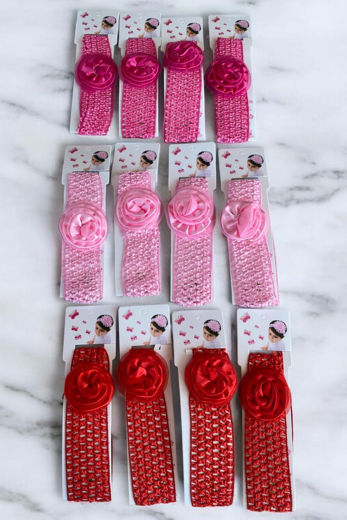 12'li Karışık Renk Gül Figürlü Saç Bandı Set