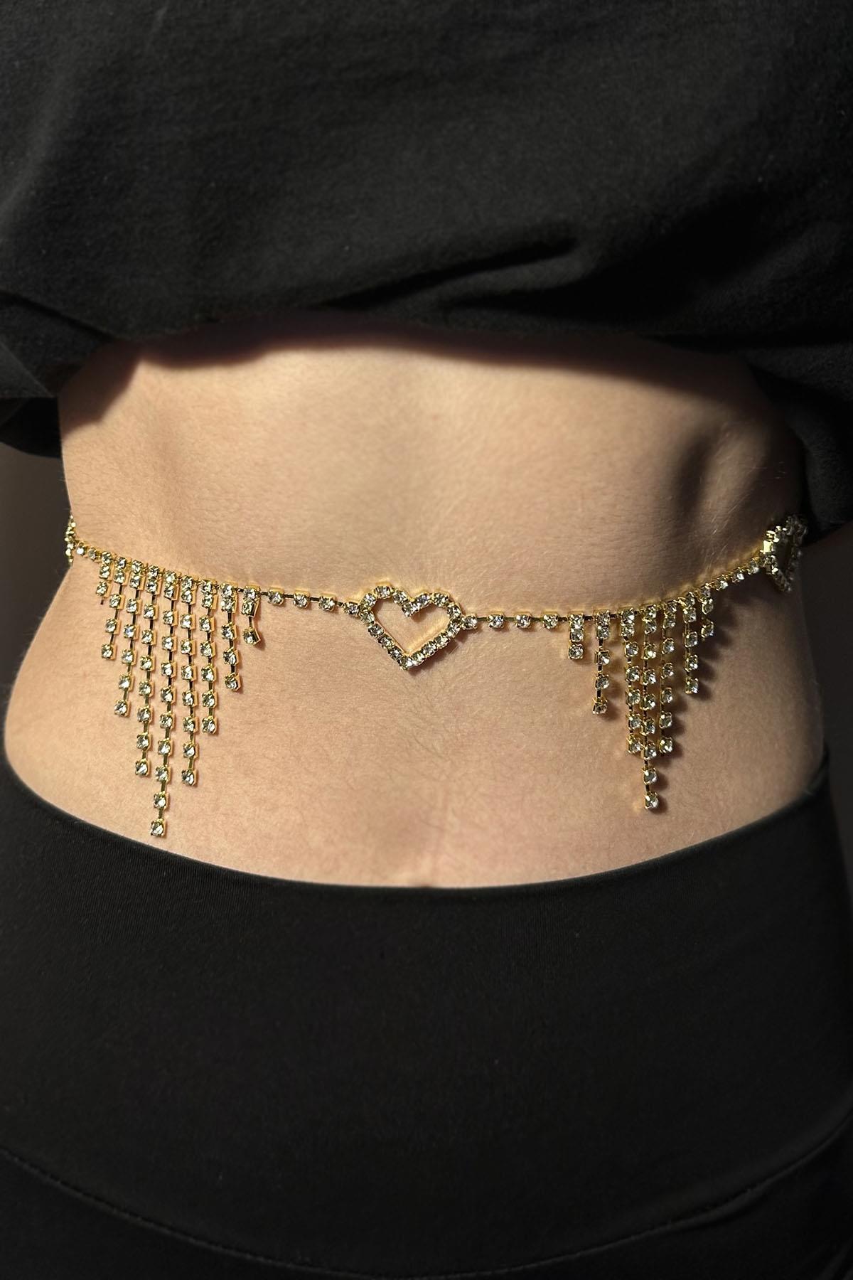 Altın Renk Taş Detaylı Tasarım Bel Zinciri/Vücut Aksesuar