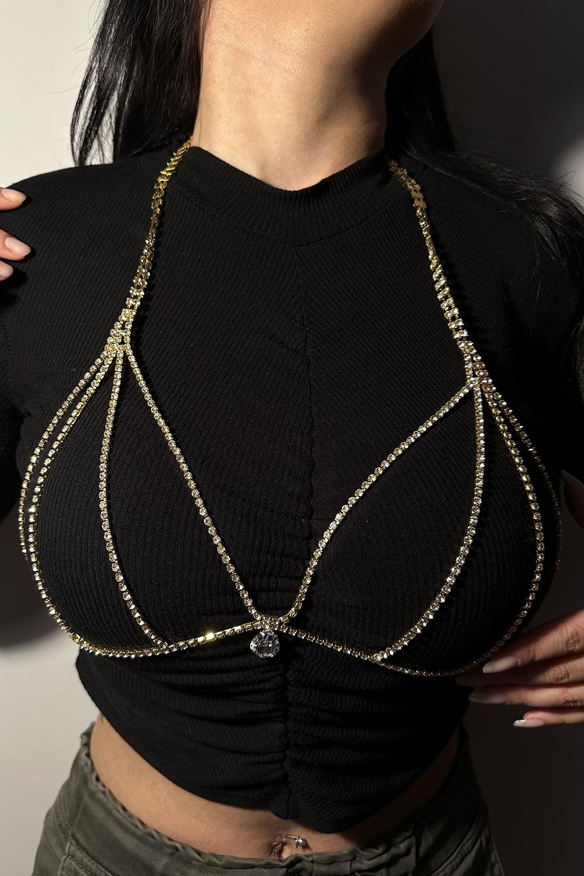 Altın Renk Taşlı Bikini Üstü/ Vücut Aksesuarı