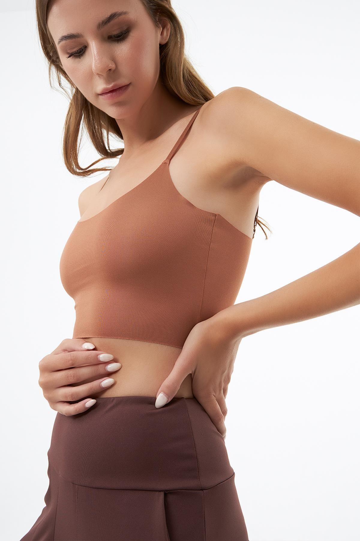 Ayarlanabilir İnce Askılı Lazer Kesim Kadın Crop Büstiyer CH1752