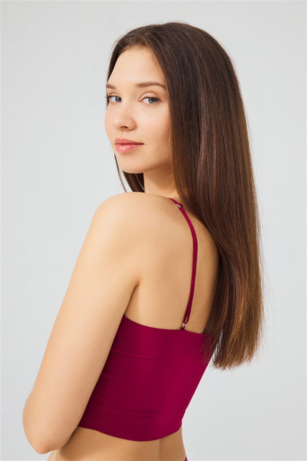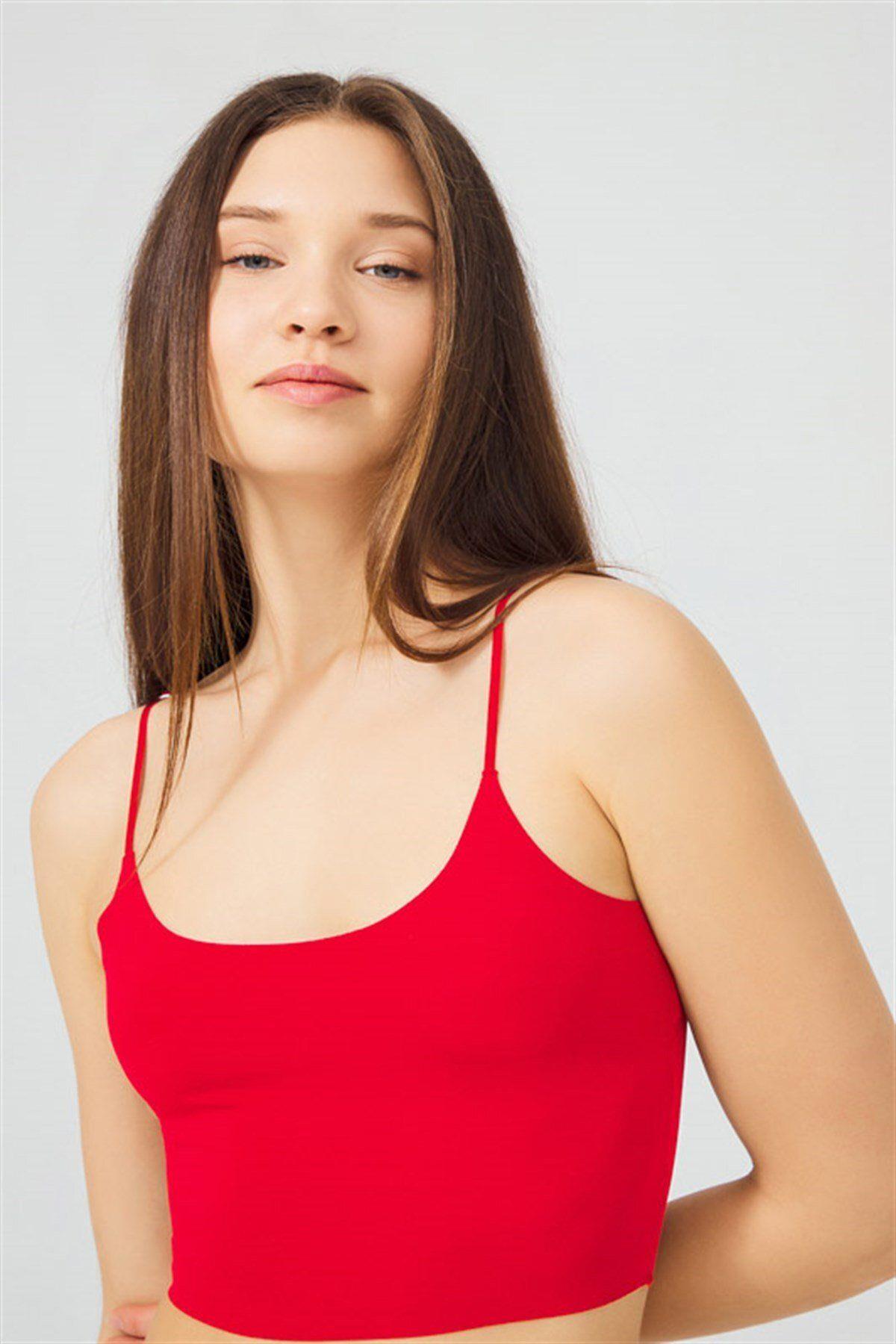 Ayarlanabilir İnce Askılı Lazer Kesim Kadın Crop Büstiyer CH1752