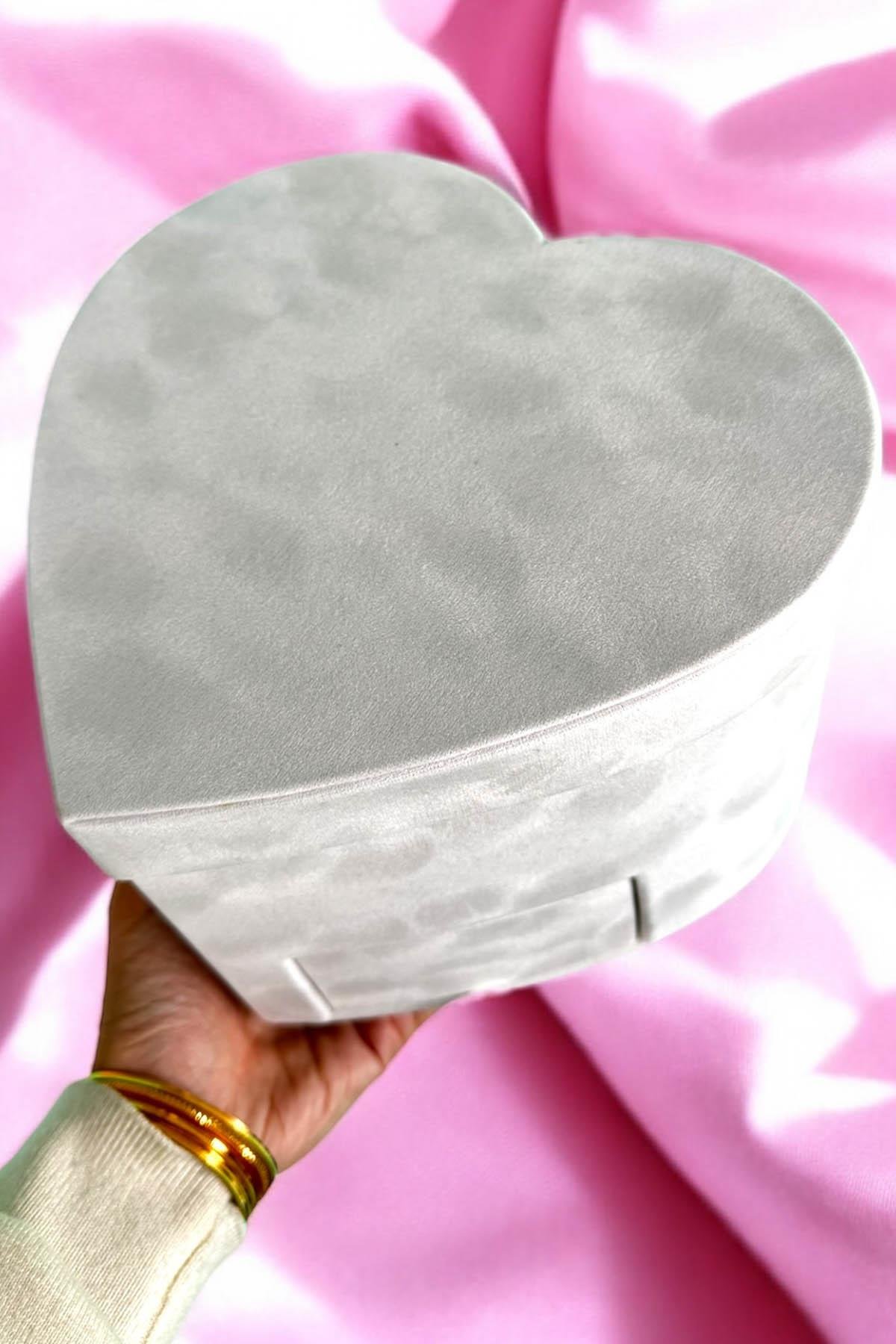 Beyaz Renk Kalp Figürlü Çekmece Detaylı Kadife Hediye Kutusu