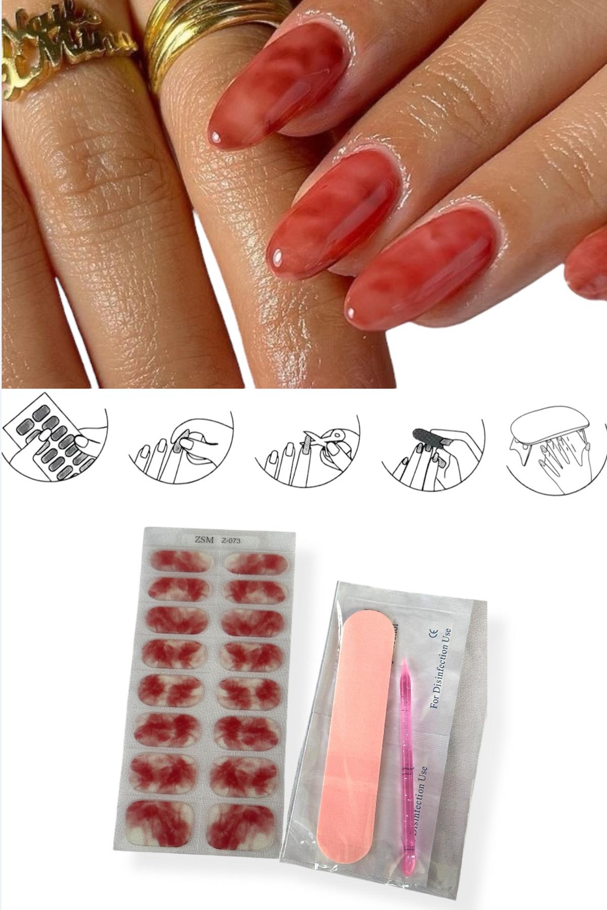 Bordo Renk Karışık Desenli Jel Tırnak Etiketi - Uv Ile Yapılan Poly Jel Sticker Sertleşen -Kürlenmiş Jel Tırnak Stickerı