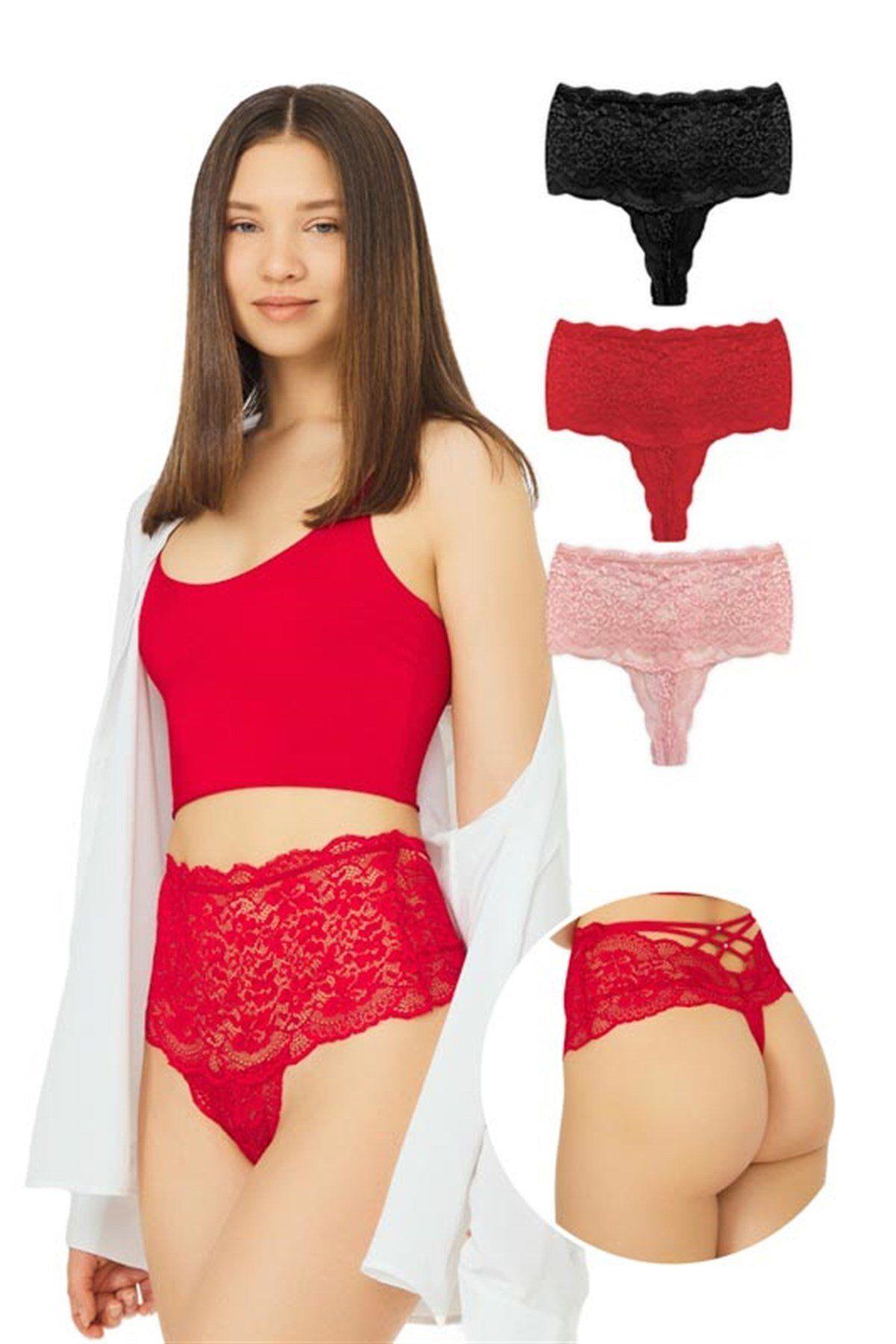 Dantelli Lastik Detaylı Yüksek Bel Kadın Tanga Külot CH6019