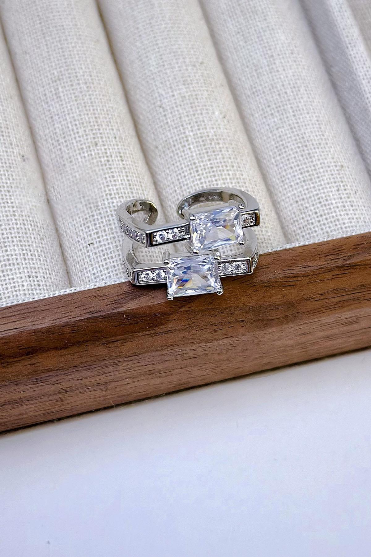 Gümüş Renk Taş Detaylı Ayarlanabilir Yüzük
