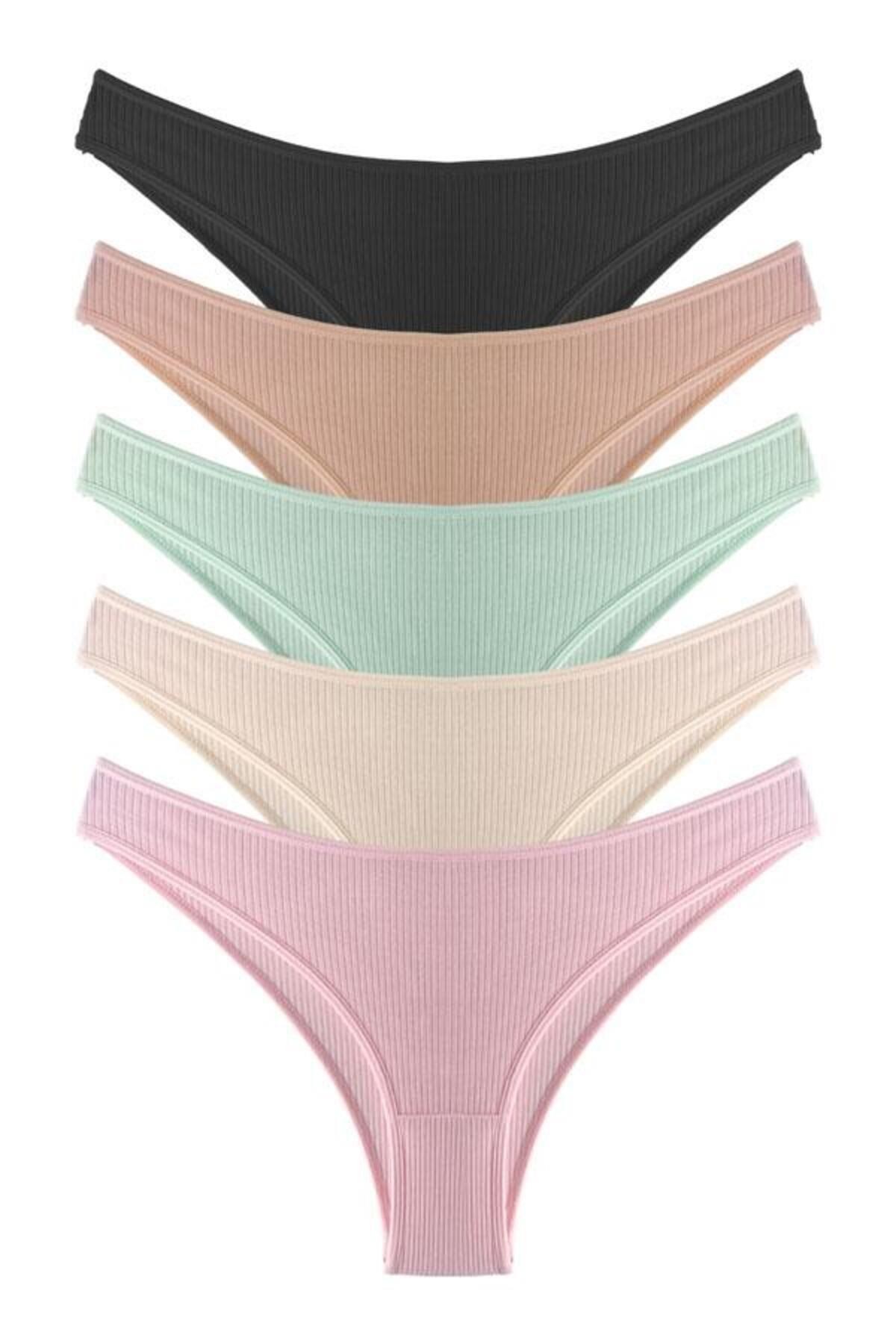 Kadın Pamuklu ve Likralı Fitilli Kaşkorse Brezilya Külot 5'li Paket CH6170