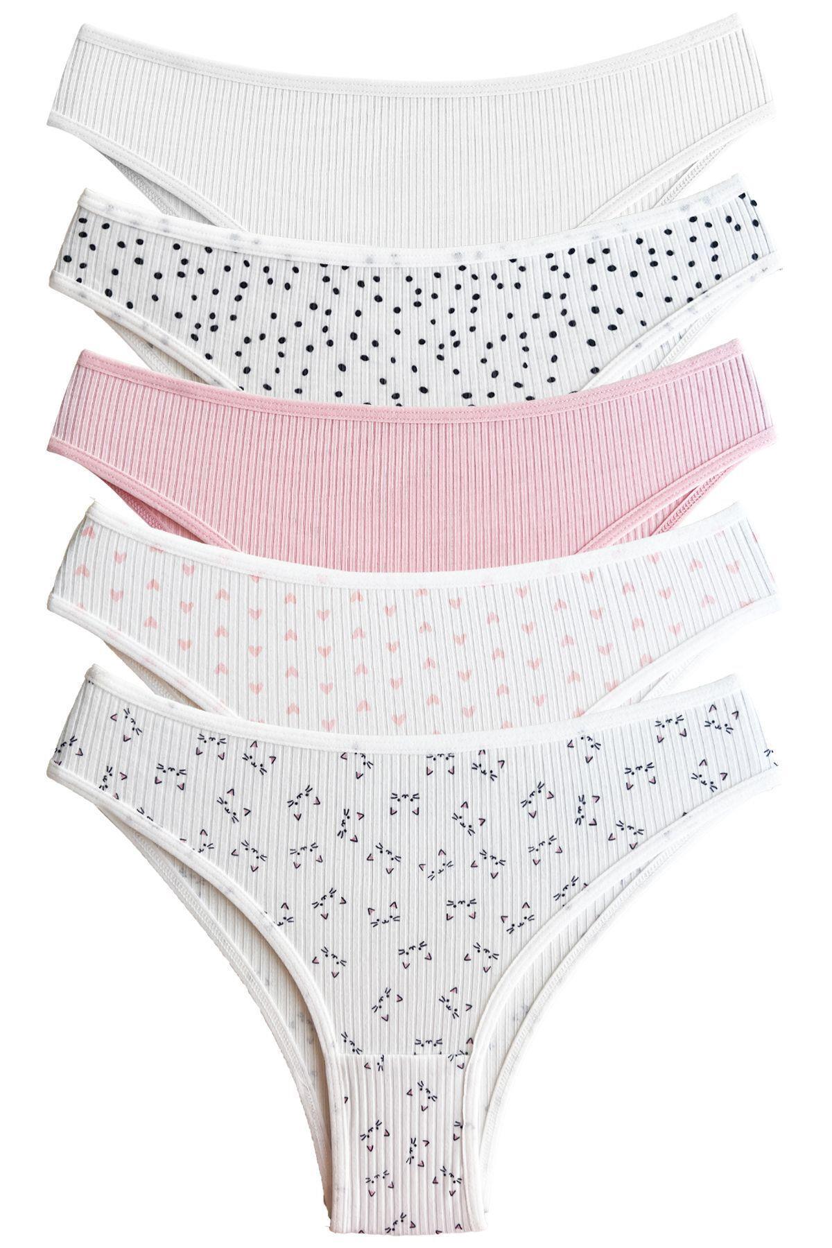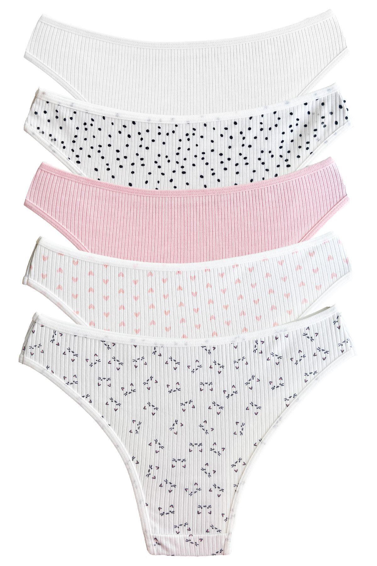 Kadın Pamuklu ve Likrali Fitilli Kaşkorse Desenli Kadın Brezilya Külot CH6181