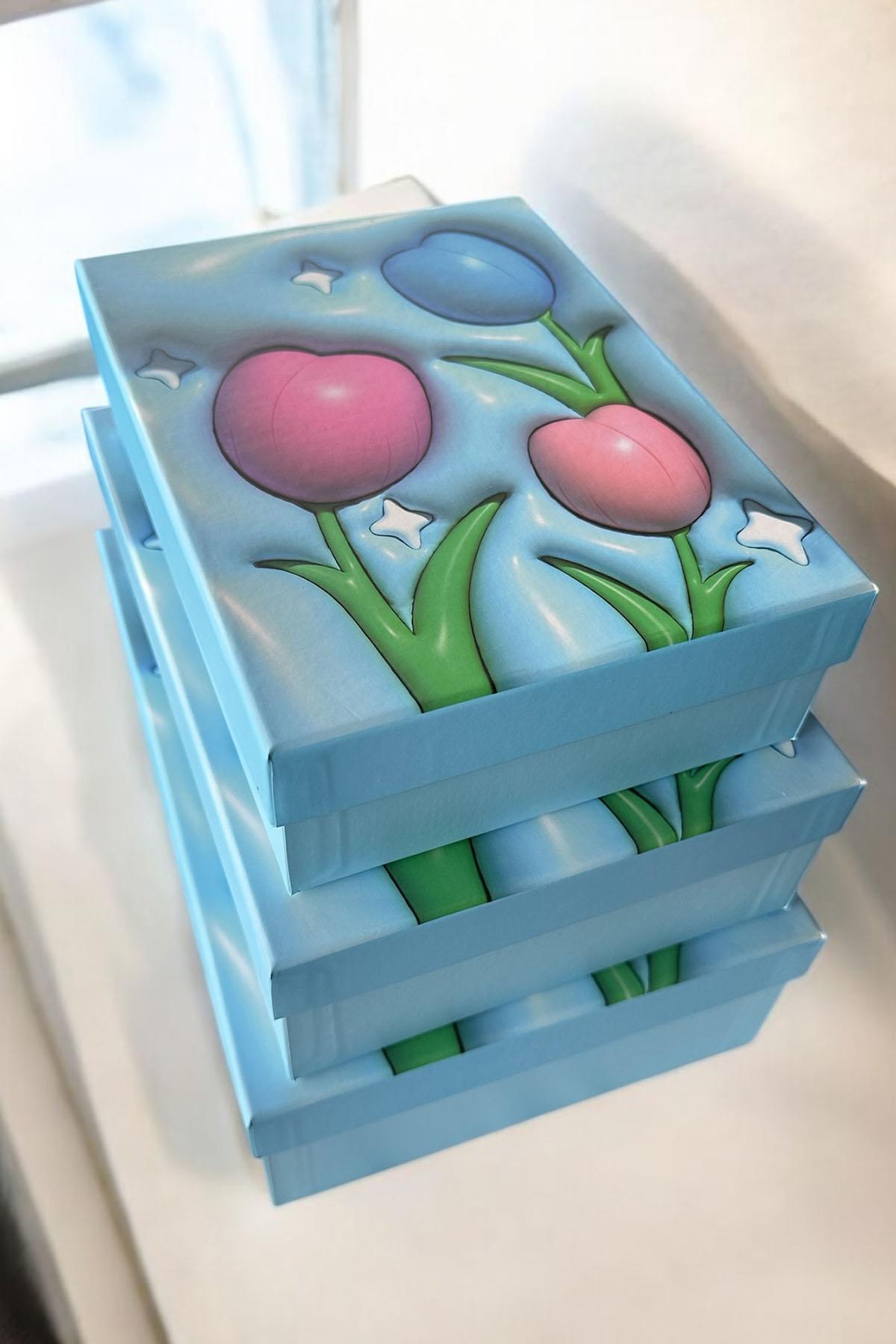 Mavi Renk Lale Figürlü 3'lü Hediye Kutusu Seti