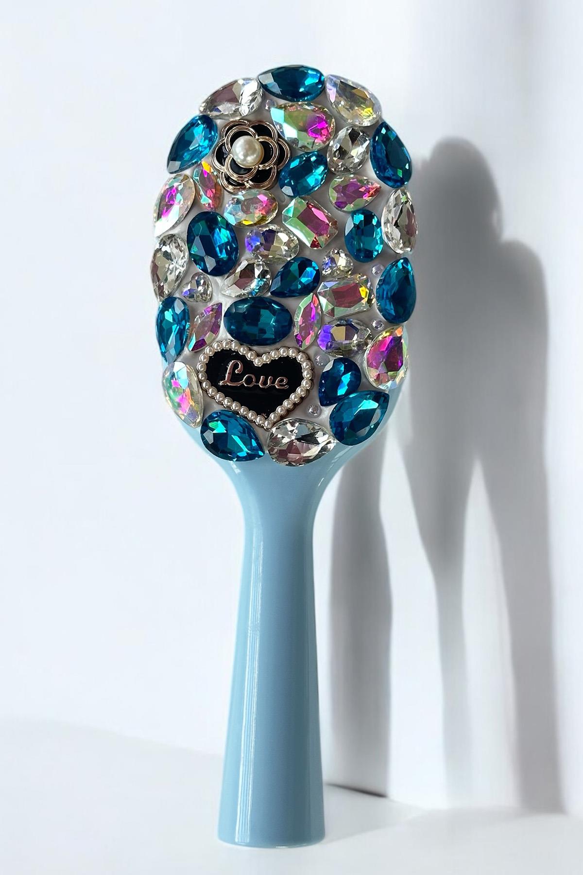 Mavi Renk Taş Ve Love Yazılı Saç Tarama Fırçası/ Tarak