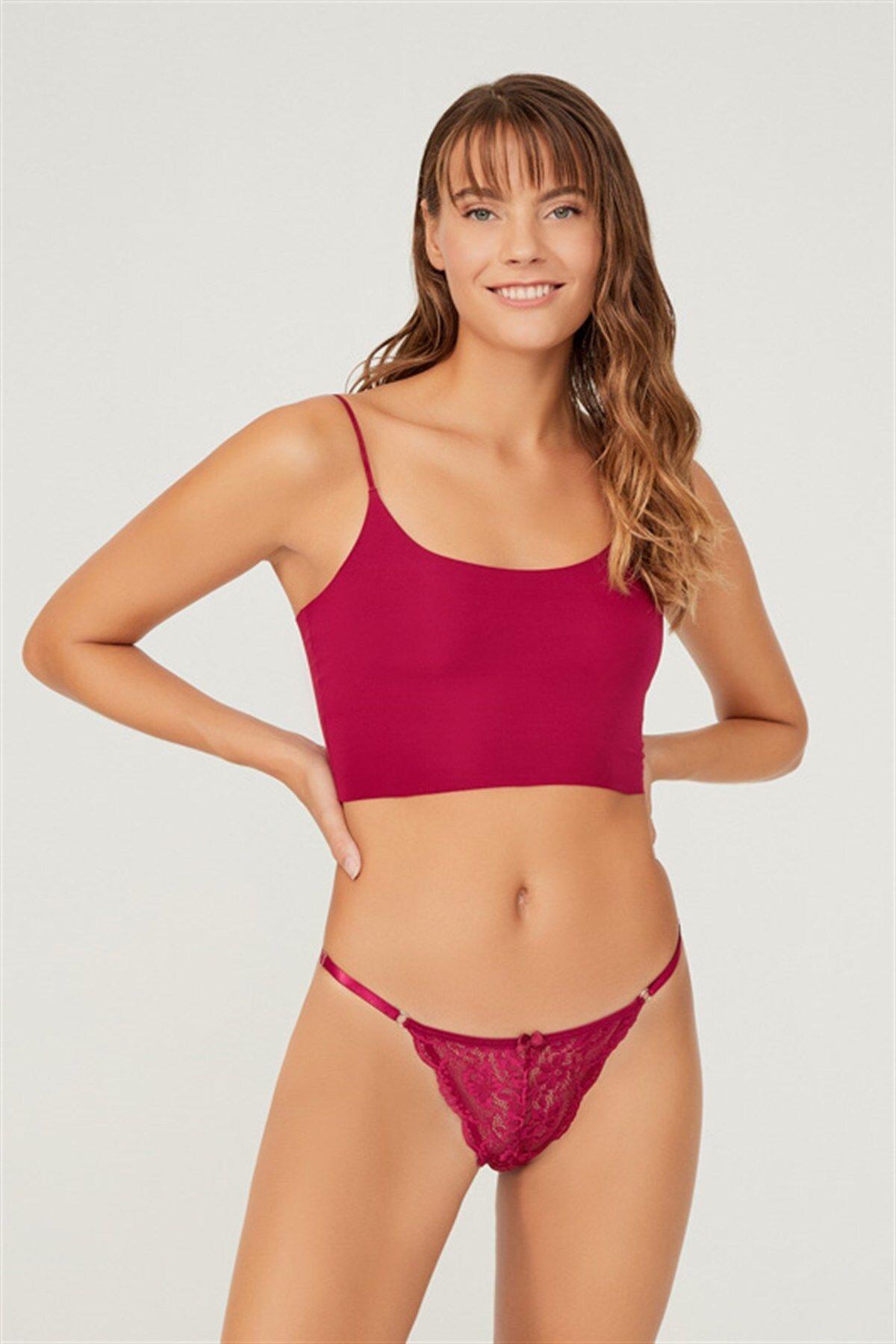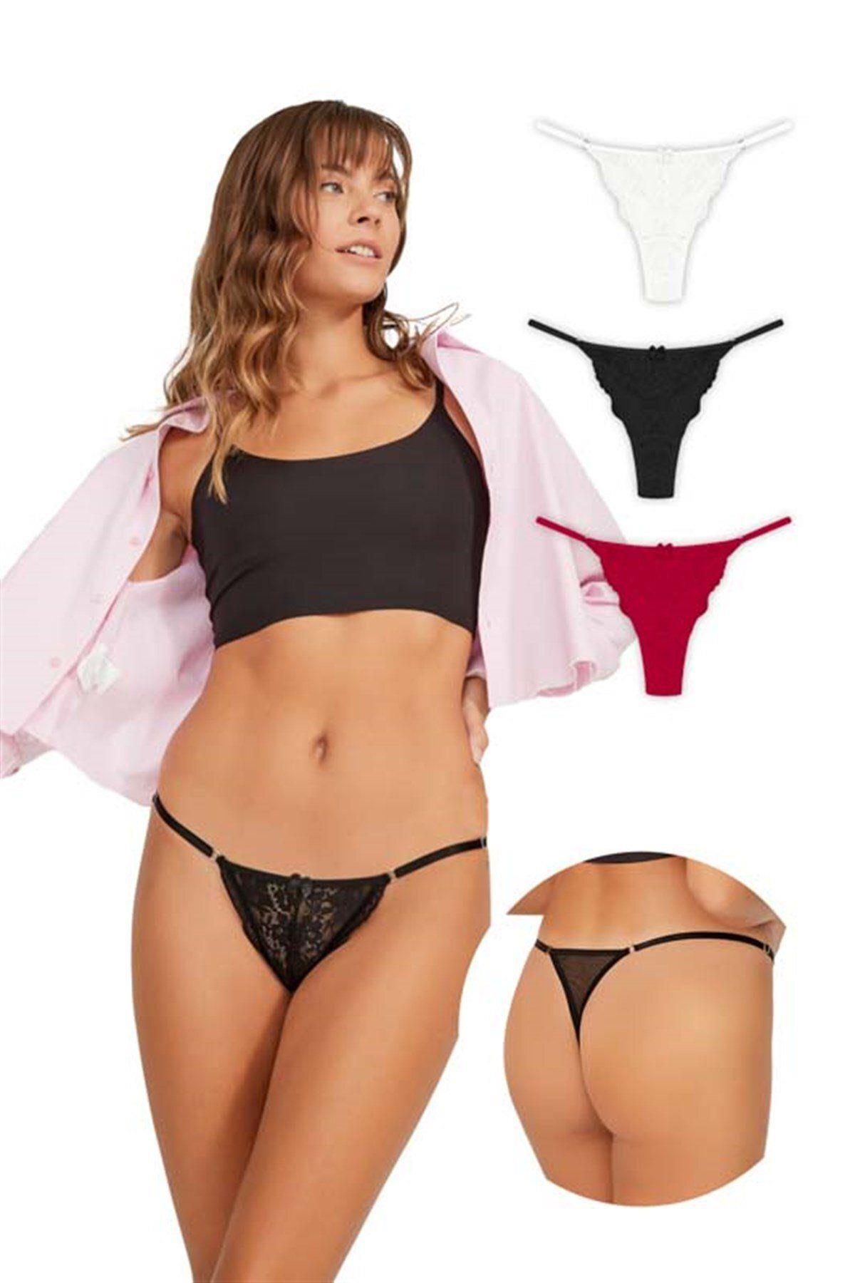 Önü Dantelli Tül Detaylı Kadın Tanga Külot CH6035