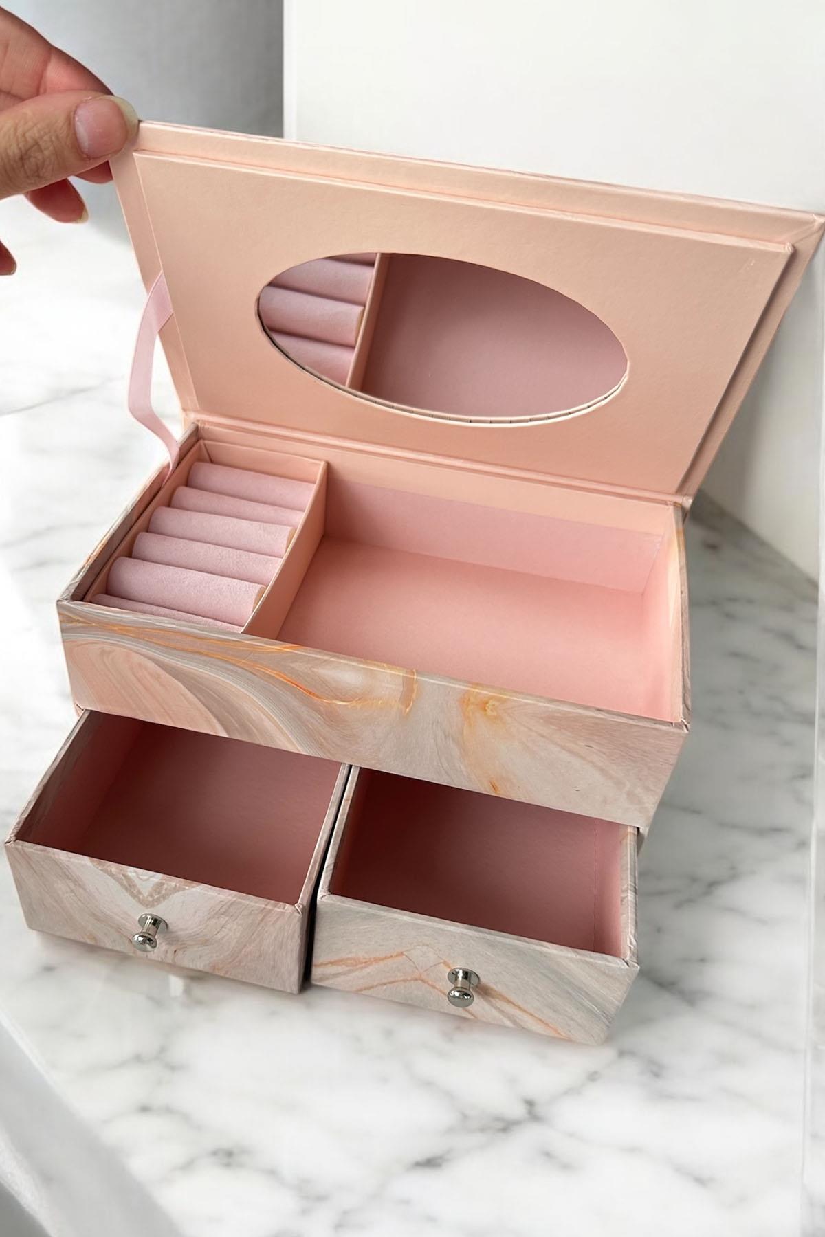 Pembe Renk Ayna Detaylı Bölmeli Çekmeceli Takı Organizeri