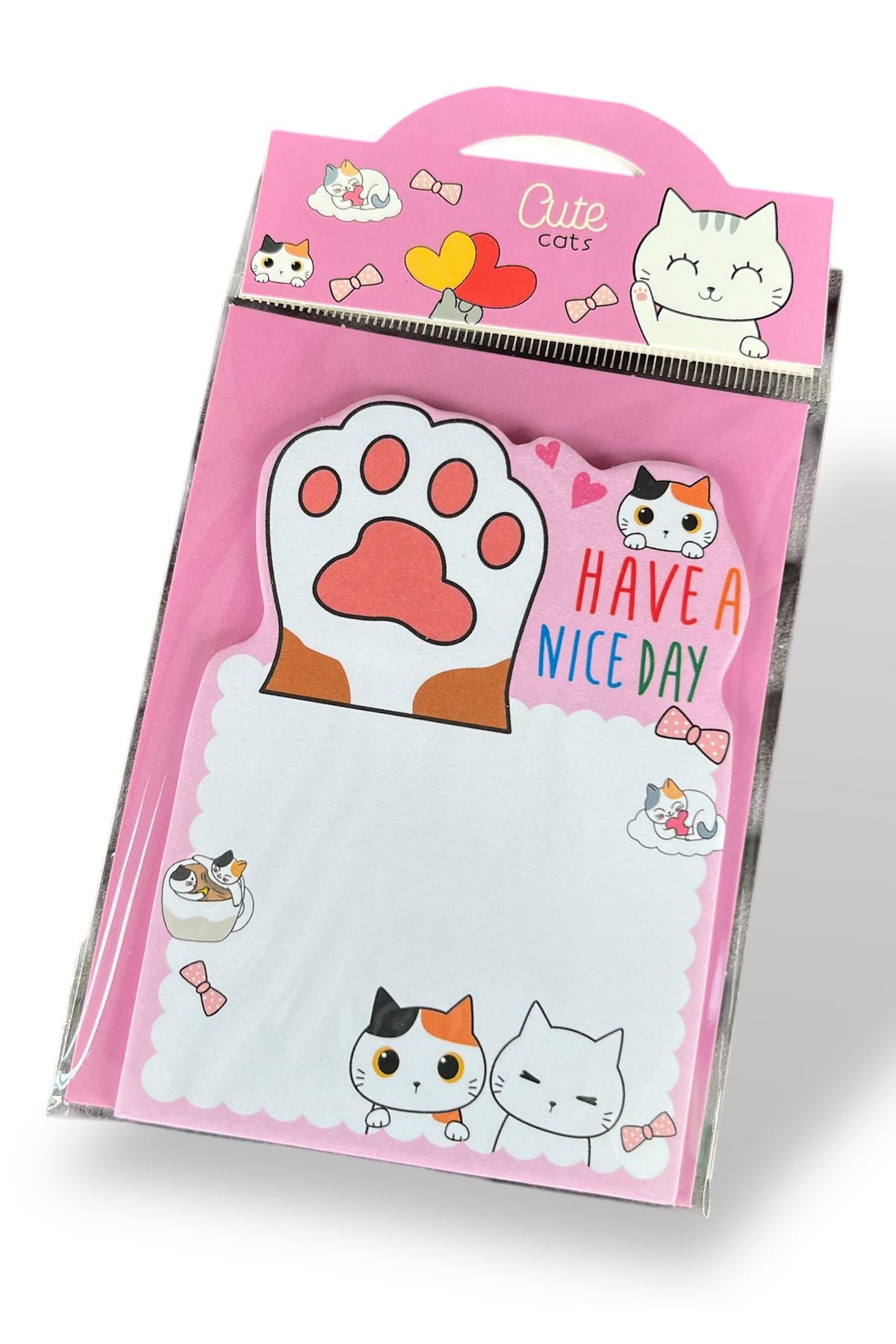 Pembe Renk Kedi Figürlü Yapışkanlı Not Kağıdı