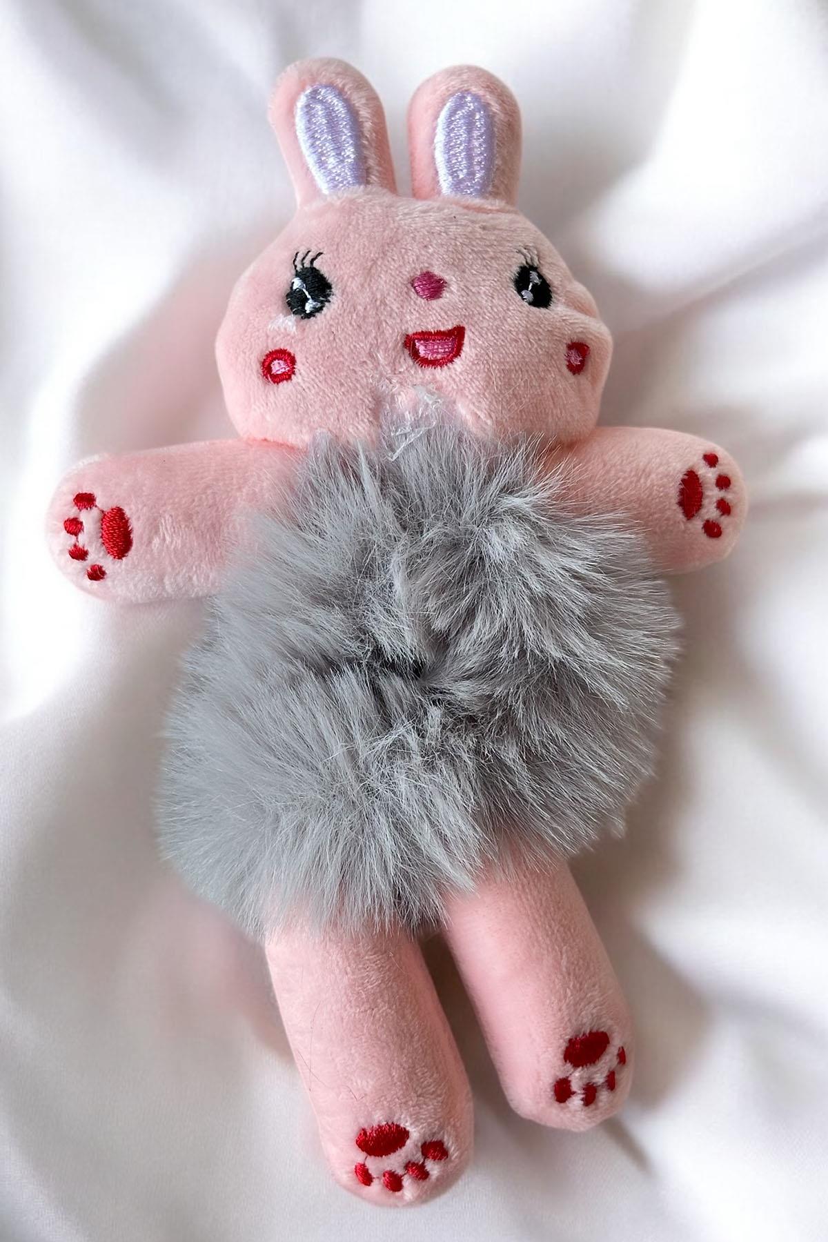 Pembe Ve Gri Renk Tavşan Figürlü Peluş Simit Toka