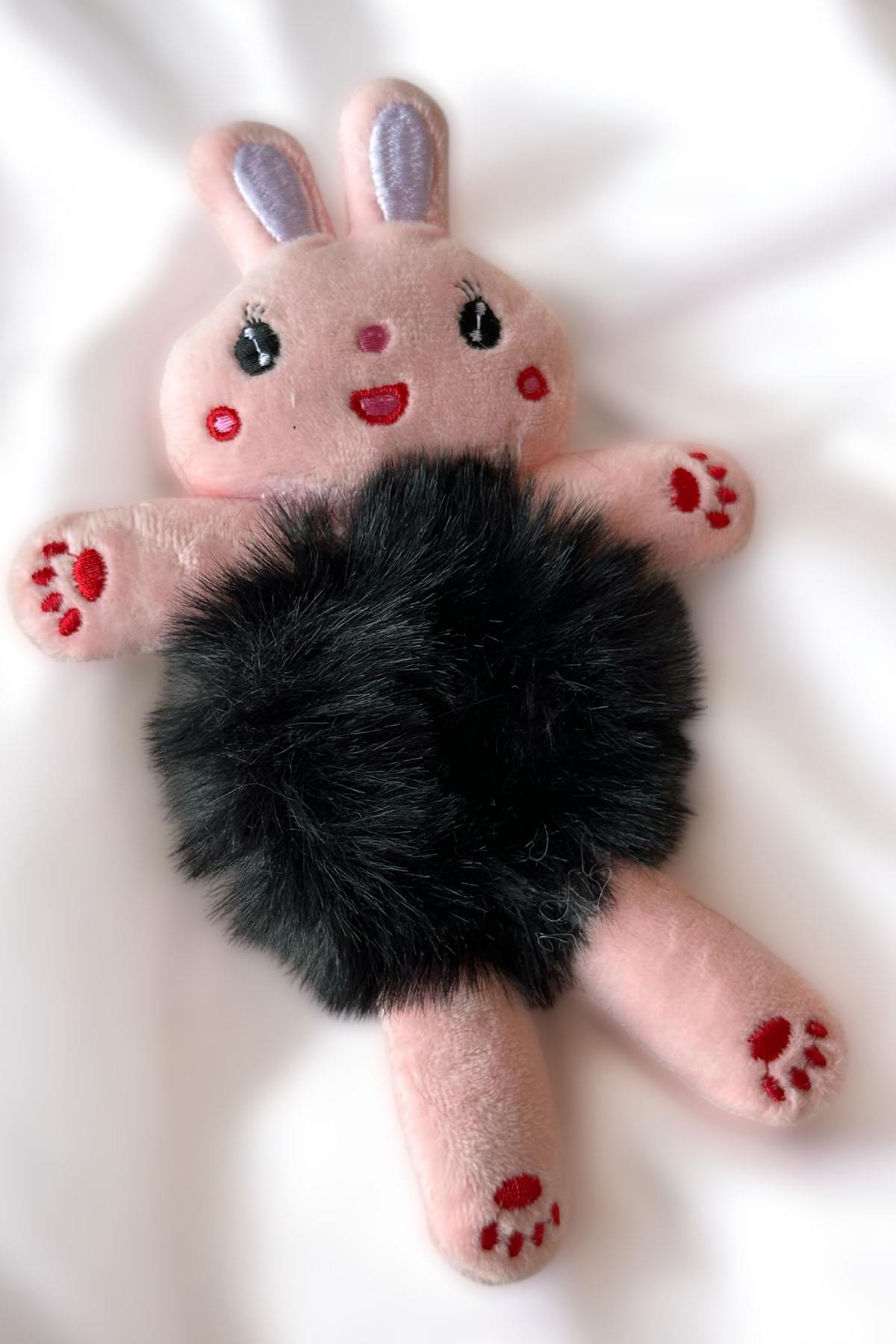 Pembe Ve Siyah Renk Tavşan Figürlü Peluş Simit Toka