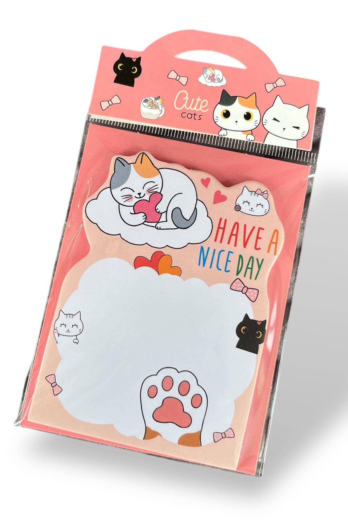 Somon Renk Kedi Figürlü Yapışkanlı Not Kağıdı