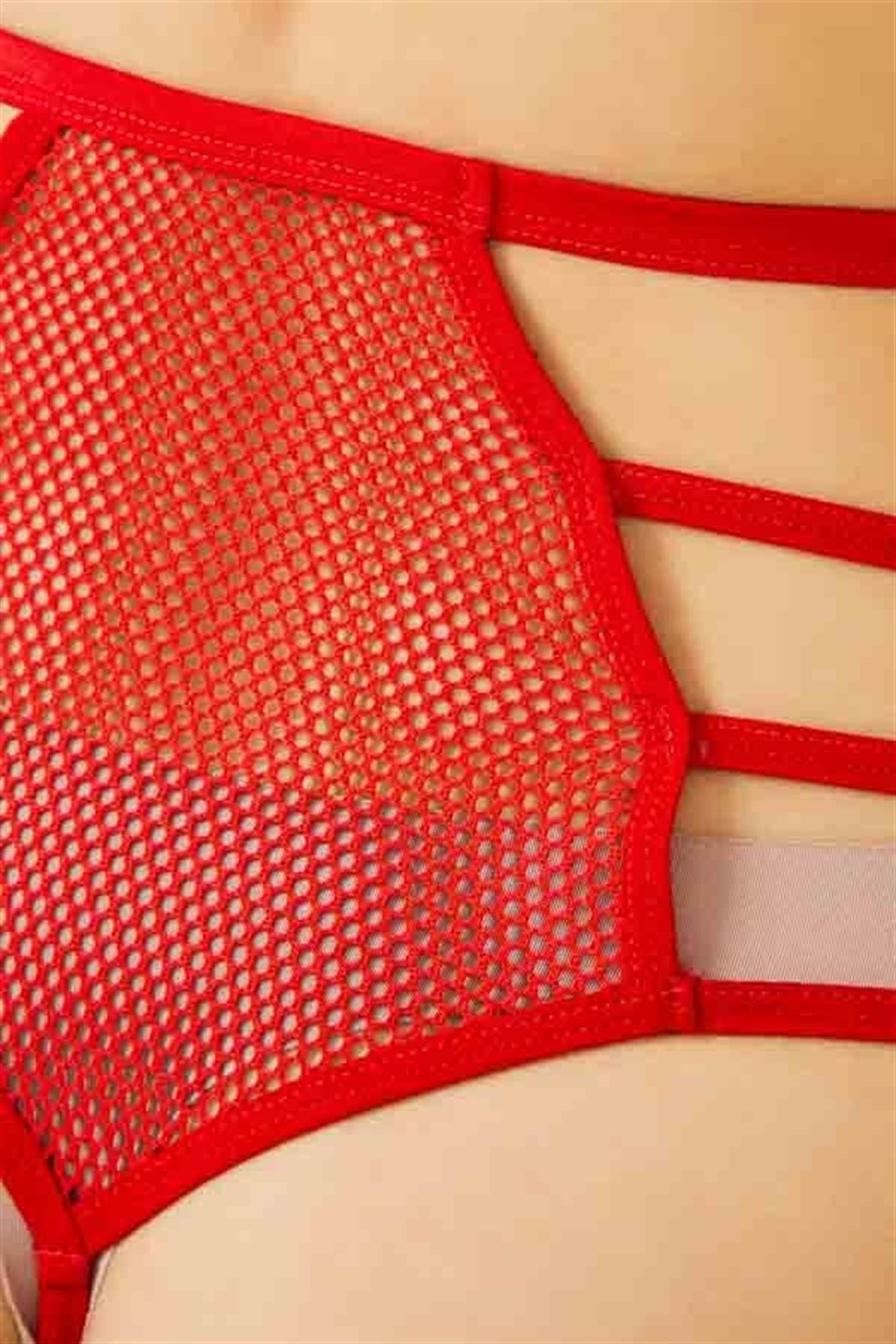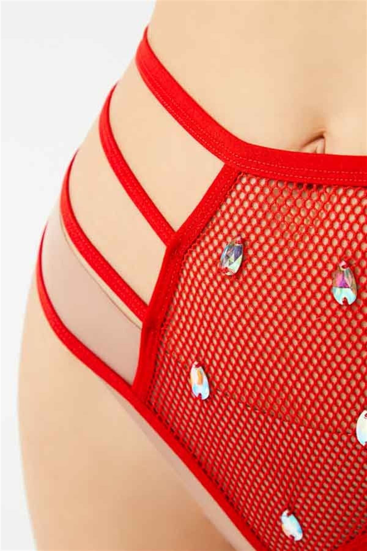 Transparan Fileli Taş ve Lastik Detaylı Yüksek Bel Kadın String Külot CH6123